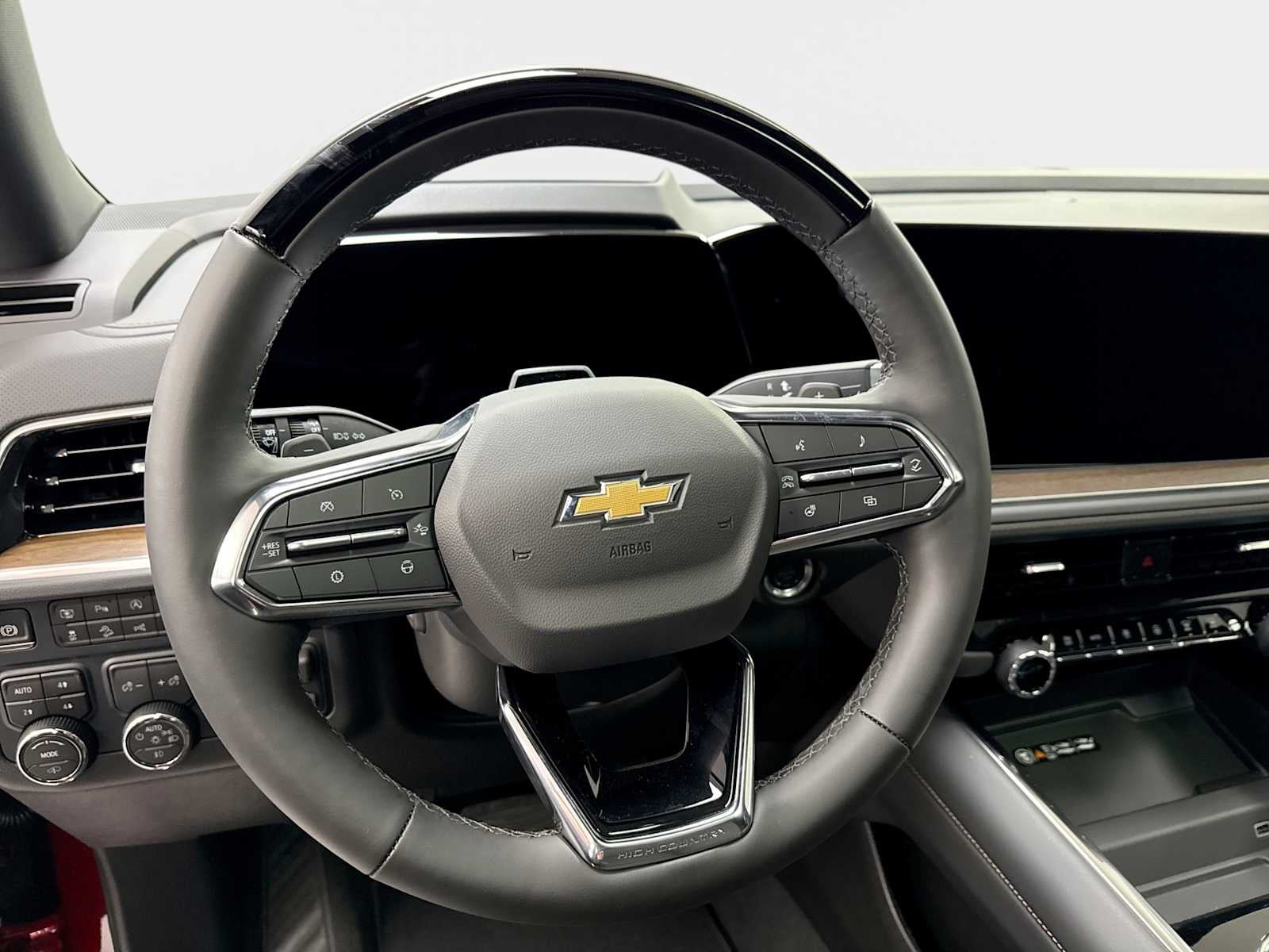 HIGH COUNTRY DELUXE includes (C3U) Panoramic power sunroof, (B3L) power-retractable assist steps with perimeter lighting, (F47) Air Ride Adaptive suspension and (NHT) Max Trailering Package, SUSPENSION, AIR RIDE ADAPTIVE, ENGINE, 6.2L ECOTEC3 V8 with Dynamic Fuel Management, Direct Injection and Variable Valve Timing, includes aluminum block construction (420 hp [313 kW] @ 5600 rpm, 460 lb-ft of torque [624 Nm] @ 4100 rpm) (STD), TRANSMISSION, 10-SPEED AUTOMATIC electronically controlled with overdrive, includes Traction Select System including tow/haul (STD), SUPER CRUISE a hands-free driver assistance feature for use on compatible roads, includes automatic lane changing and trailering capability, AUDIO SYSTEM, 17.7" DIAGONAL ADVANCED COLOR LCD DISPLAY with Google built-in compatibility (select service plan required, terms and limitations apply), including navigation capability, connected apps, personalized profiles for each driver's settings, Natural Voice Recognition and Phone Integration (STD), ADVANCED TRAILERING PACKAGE includes (UKW) Blind Zone Steering Assist with Trailering, (PZ8) Hitch View and (UET) Smart Trailer Integration Indicator. Chevrolet High Country with Radiant Red Tintcoat exterior and Jet Black interior features a 8 Cylinder Engine with 420 HP at 5600 RPM*.